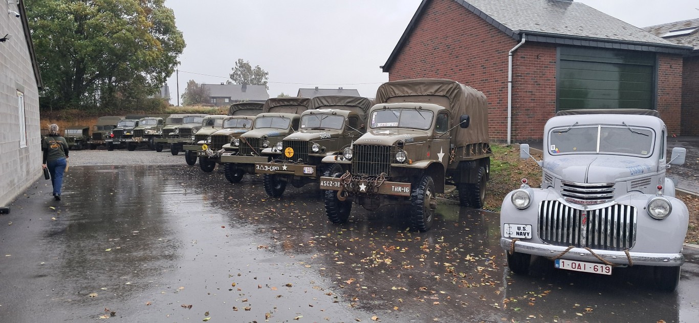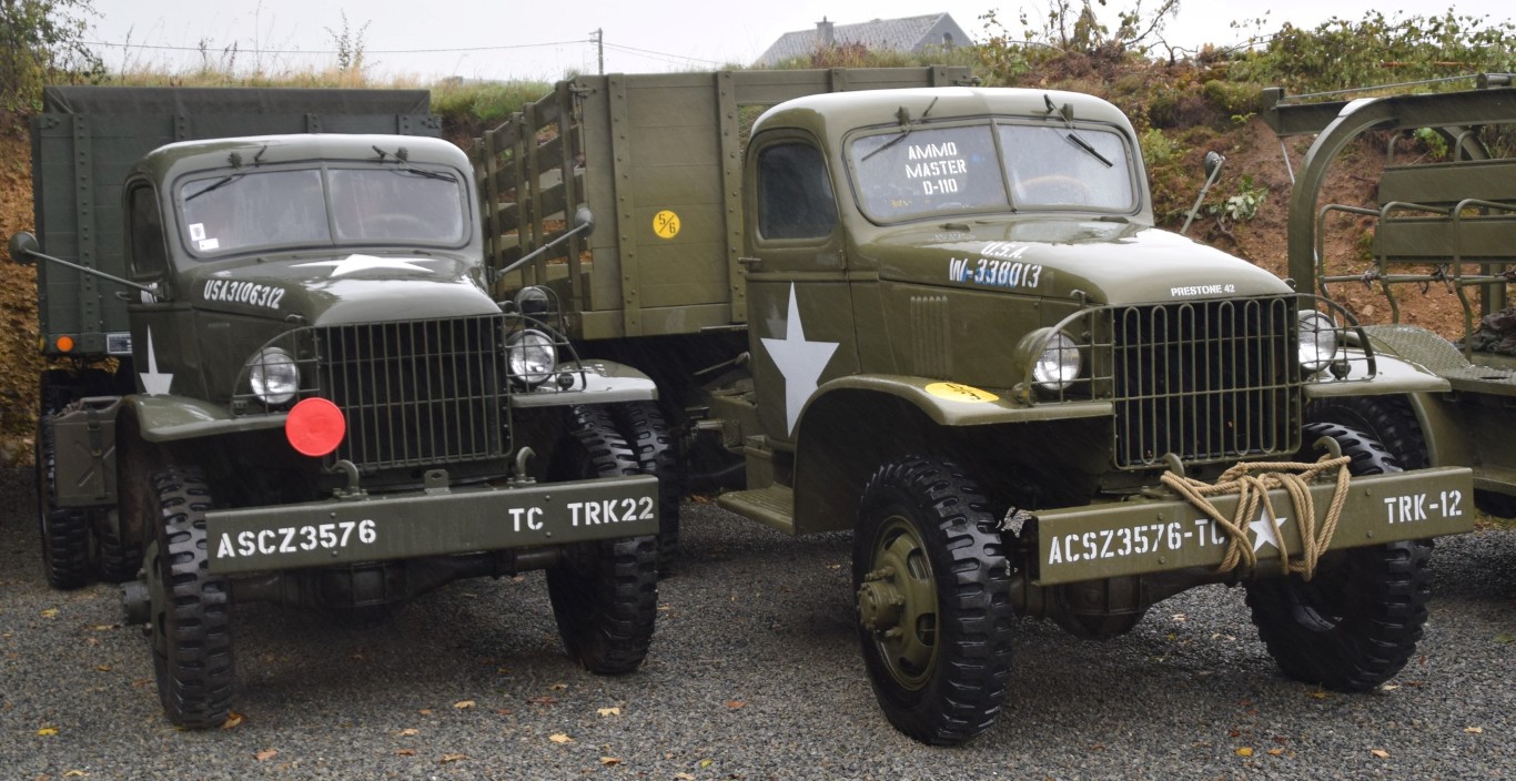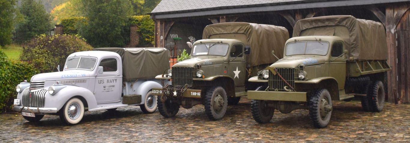 Nous avons dénombré la présence de 12 véhicules issus de la firme Chevrolet, dont quelques raretés : deux tracteurs de semi avec leur remorque d'origine et deux M6 Bomb Service, dont un avec sa (très rare) remorque chargée de bombes (factices), un pickup en livrée US Navy, côtoyant un discret et rarissime Chevy early type (peut-être le seul en Europe, à notre connaissance), deux Chevy à benne basculante (dump trucks) et deux en version cargo, avec et sans treuil.